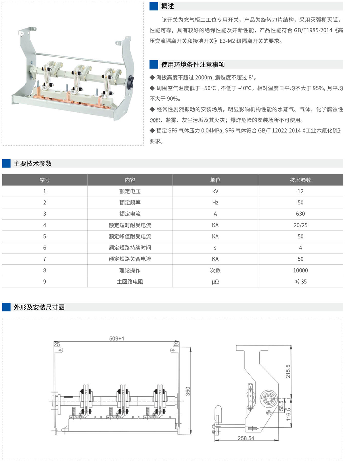 GYFV-12/630-25充气柜断路器(带隔离带接地)